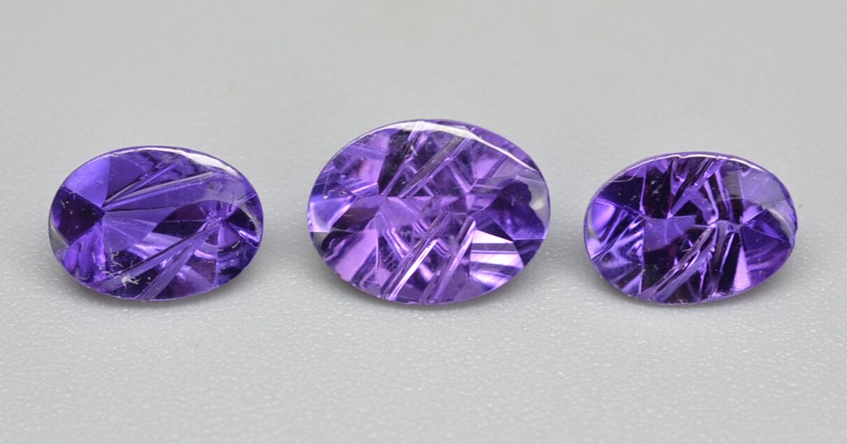 Fantasy Amethyst 2.38 ct Set of (3) Oval (2) 7 x 5 mm (1) 8 x 6 mm Yin Yang Cut max6347