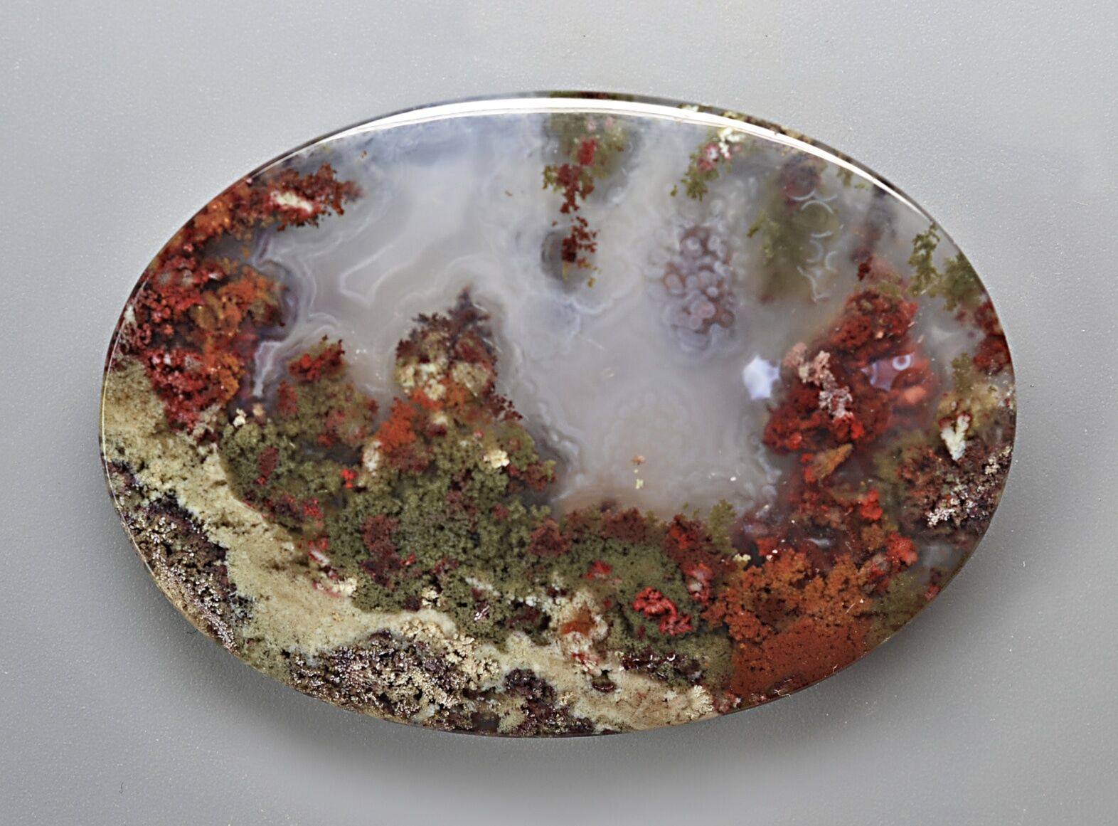 Indonesian Moss Agate 116.80 ct Oval Cabochon 61.00 x 41.00 x 6.00 mm max3085