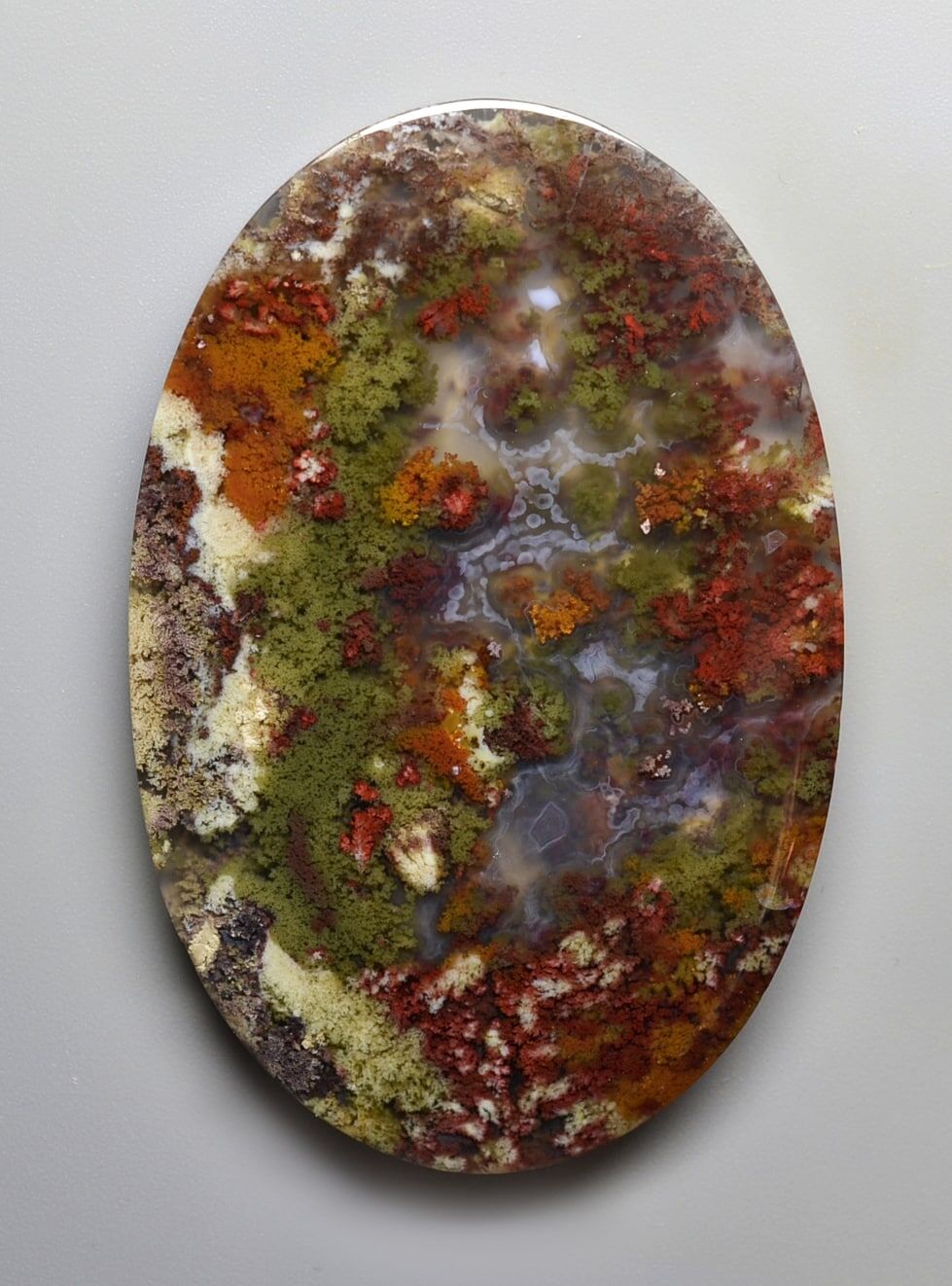 Indonesian Moss Agate 98.17 ct Oval Cab ocher 50.20 z 39.80 x 4.90 mm max3202
