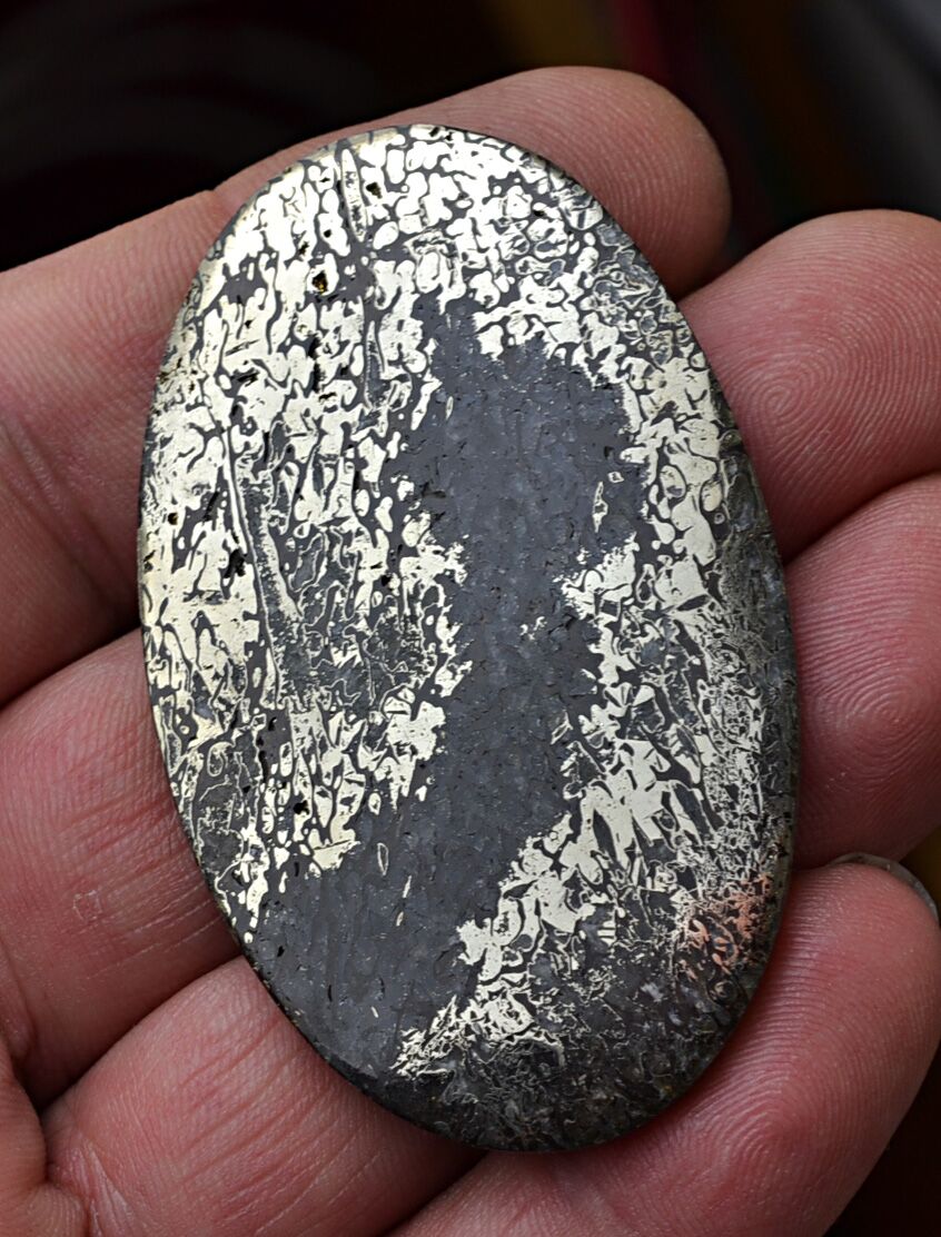 interesting fossil plesiosaurus bone,partially fossilized in pyrite; clear structure of the bone visible in this polished on both side cabochon. This fossil is from the middle Jurassic period, dated about 150 million years ago and comes from Tatarstan Region, Russia.