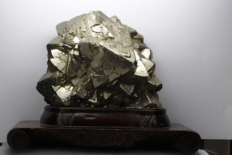 Pyrite: Group 116 x 95 x 75 mm Elba Wooden Stand
